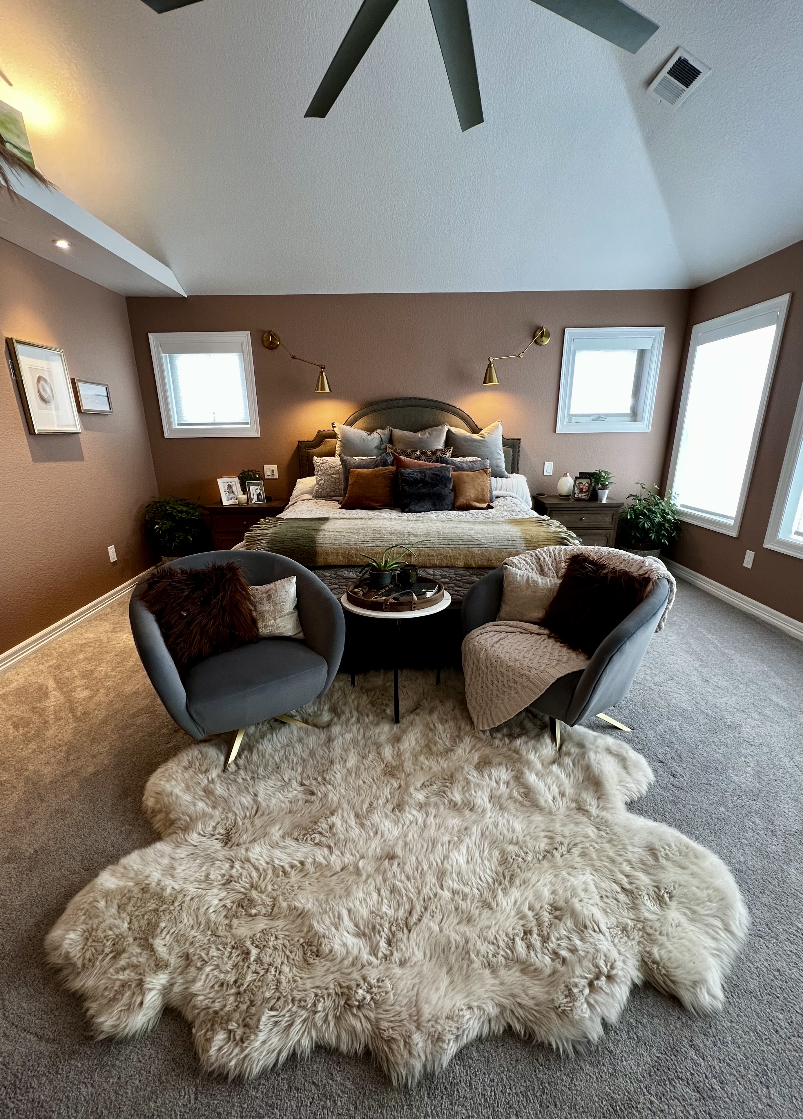 Being an Interior Designer is knowing how to provide proper space planning and implementing the appropriate colors, textures, patterns and lighting to evoke a desired feeling. I was honored to enhance this master bedroom for an Erie couple.