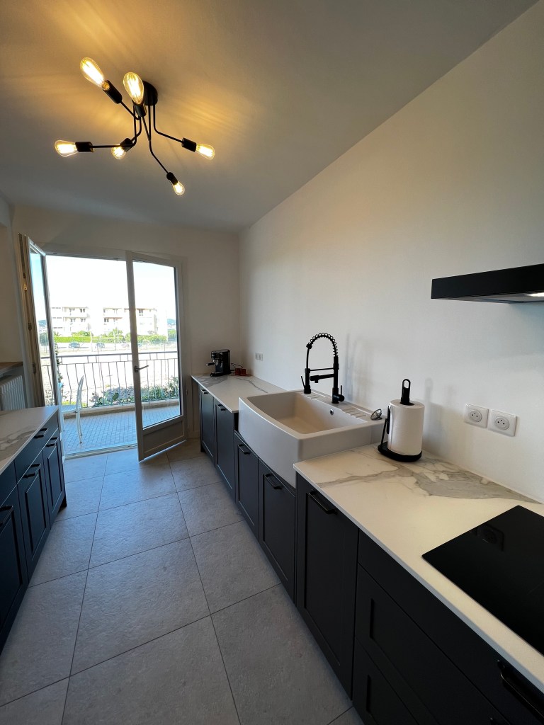 This apartment building was built in the early 1960’s. This unit started as a 3 bedroom and a previous owner knocked down a wall to incorporate a living space. My clients desired an open concept kitchen/dining so we knocked down another wall and designed a new, more functional kitchen and bar. See below!