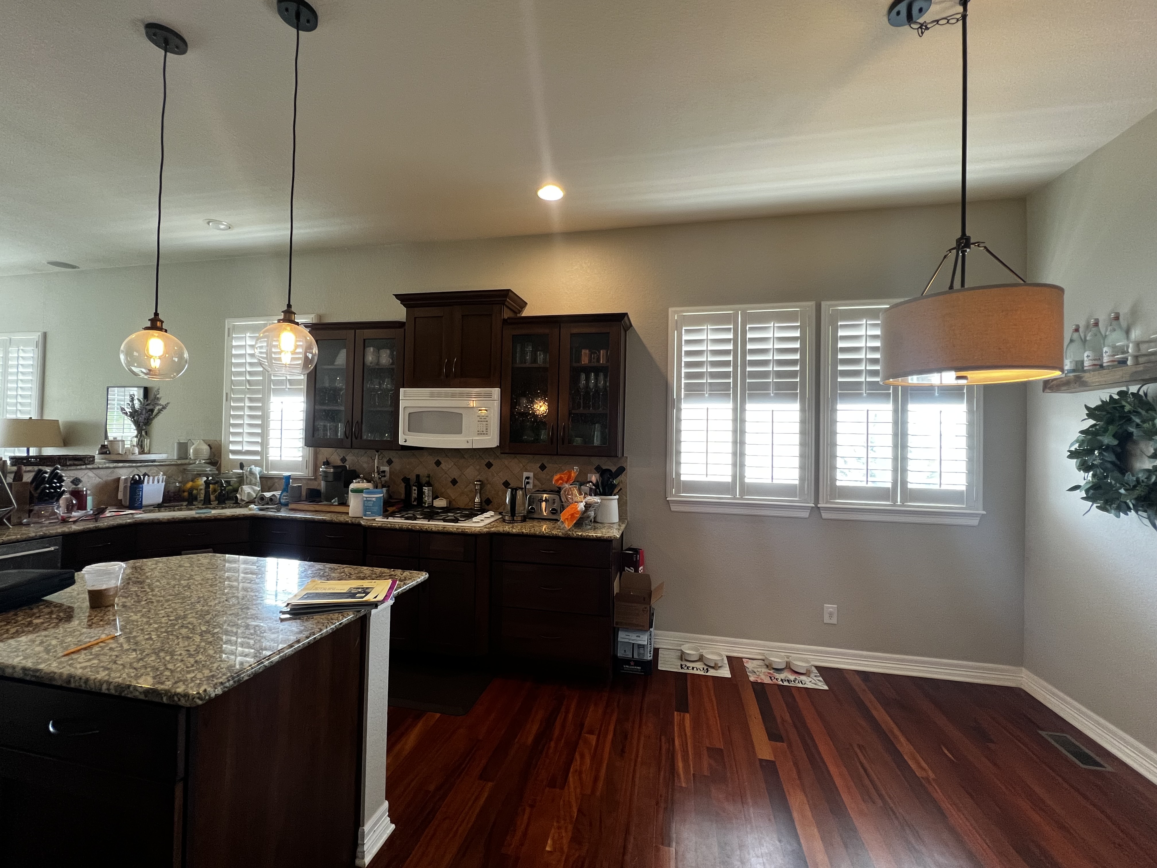 Installed French exterior doors in the seating area, installed new flooring throughout main level and upstairs, new kitchen layout, added a pantry where the kitchen nook used to be, all new cabinetry, countertops, appliances, lighting placement and fixtures and the list goes on an on…